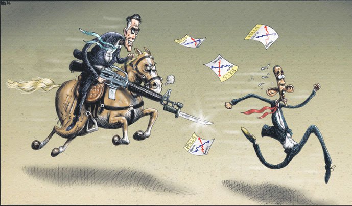 The Post will laugh this off by claiming it's all just a metaphor for Romney surging (supposedly) in the polls, that the gun is shooting polling charts rather than bullets, and that the bayonet and horse are intended merely to satirize Obama's comment about horses and bayonets in the final Presidential debate between Obama and Governor Romney on Oct. 22.